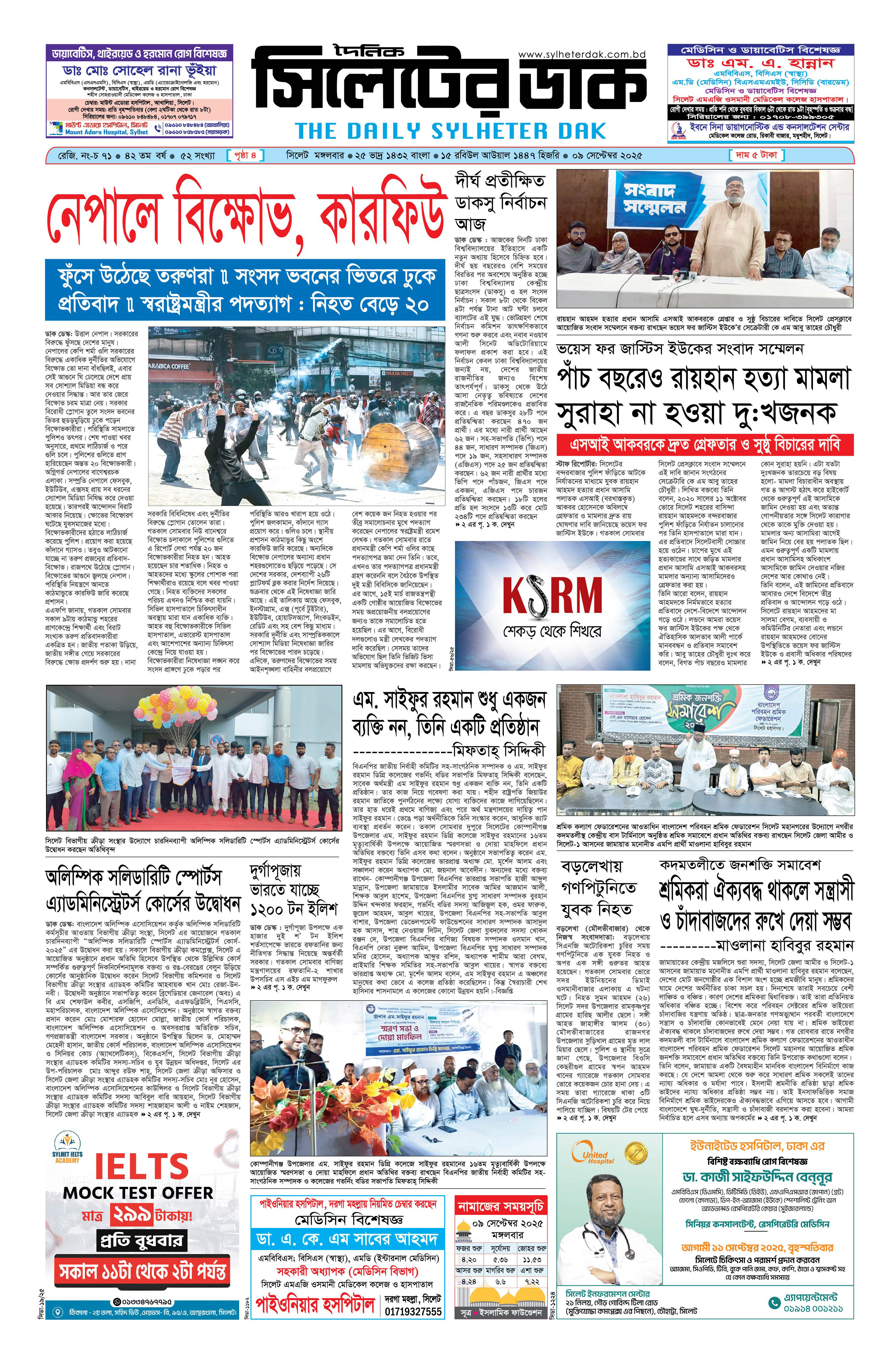 মঙ্গলবার, ০৯ সেপ্টেম্বর ২০২৫