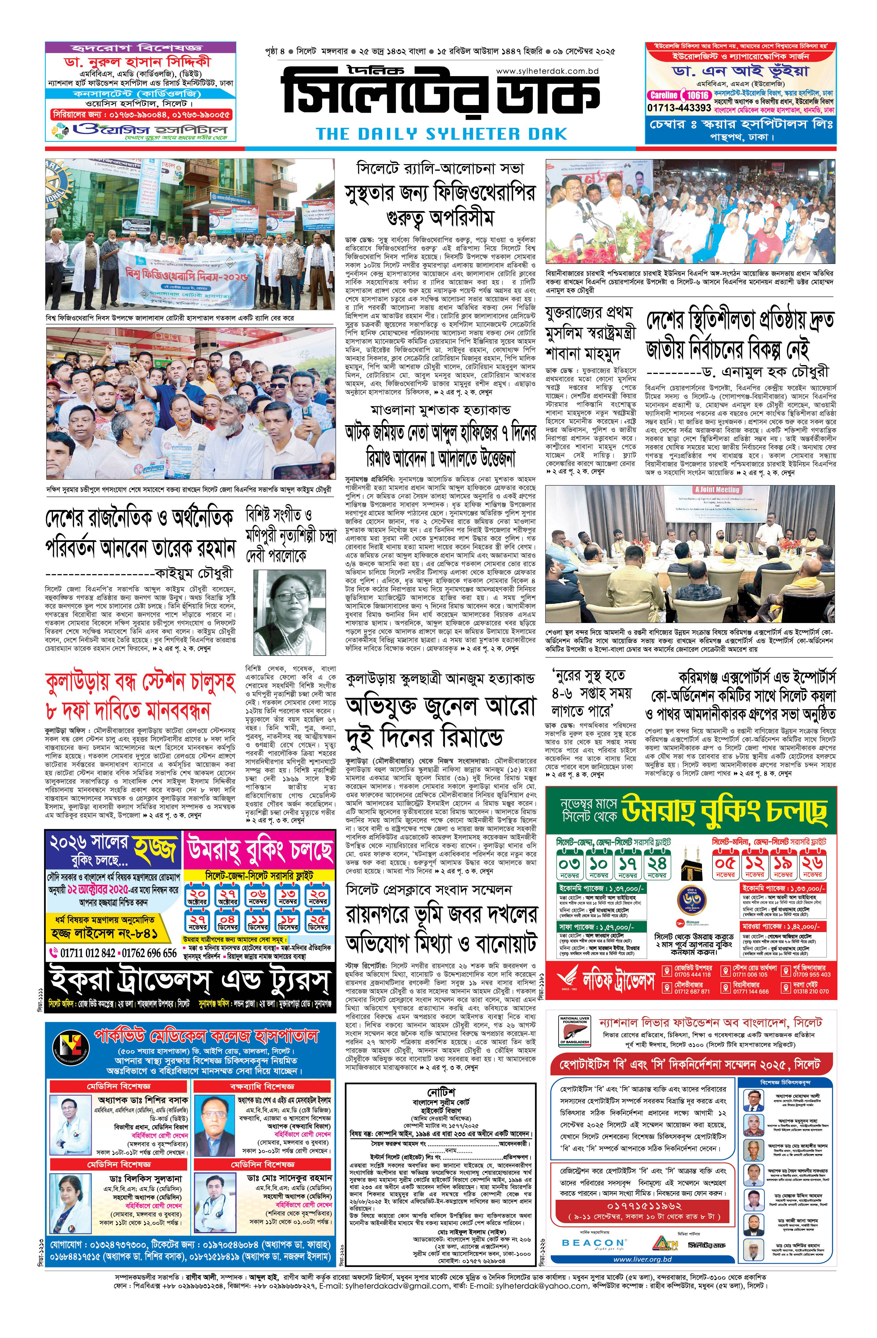 মঙ্গলবার, ০৯ সেপ্টেম্বর ২০২৫