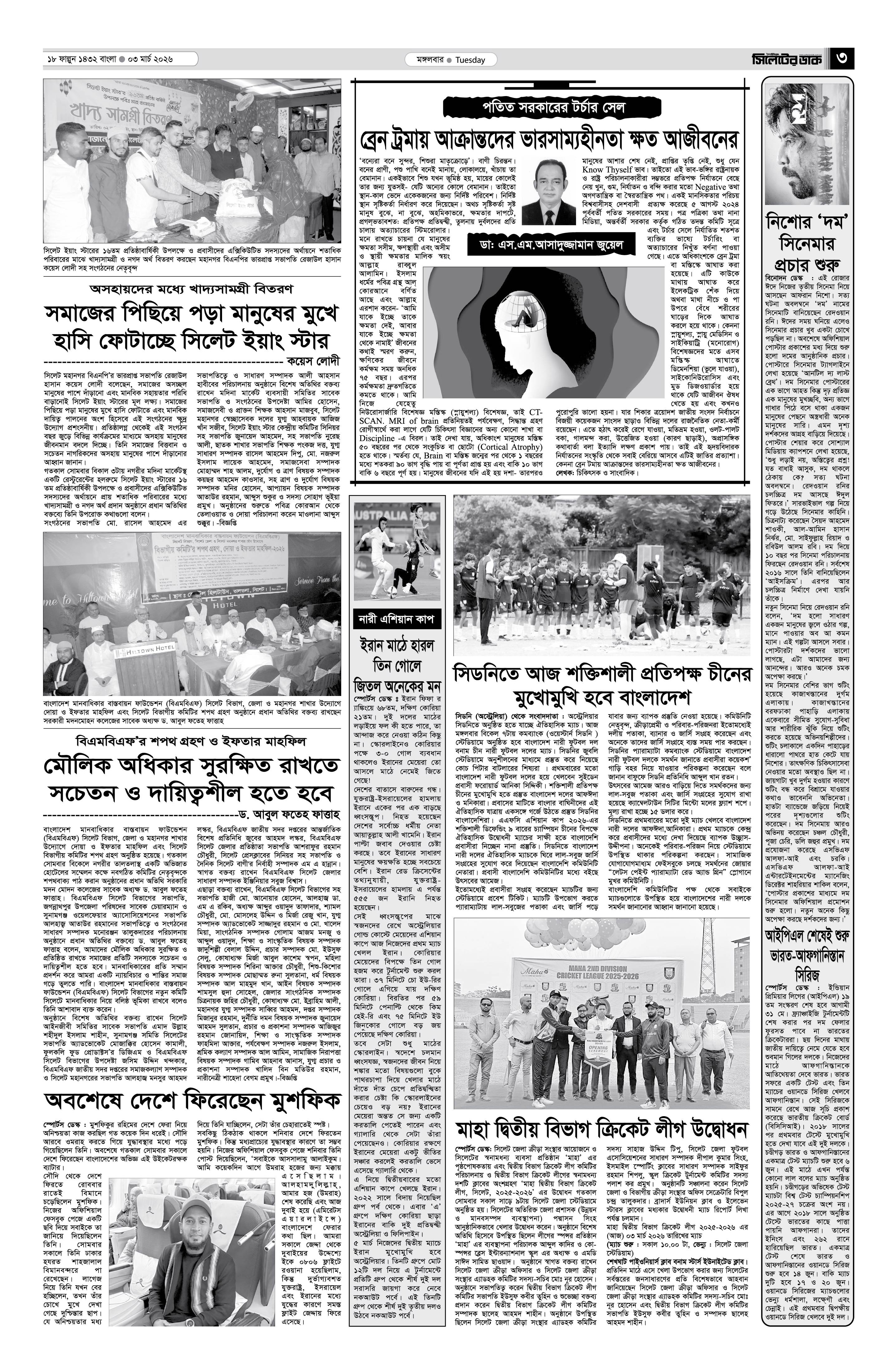 মঙ্গলবার, ০৩ মার্চ ২০২৬