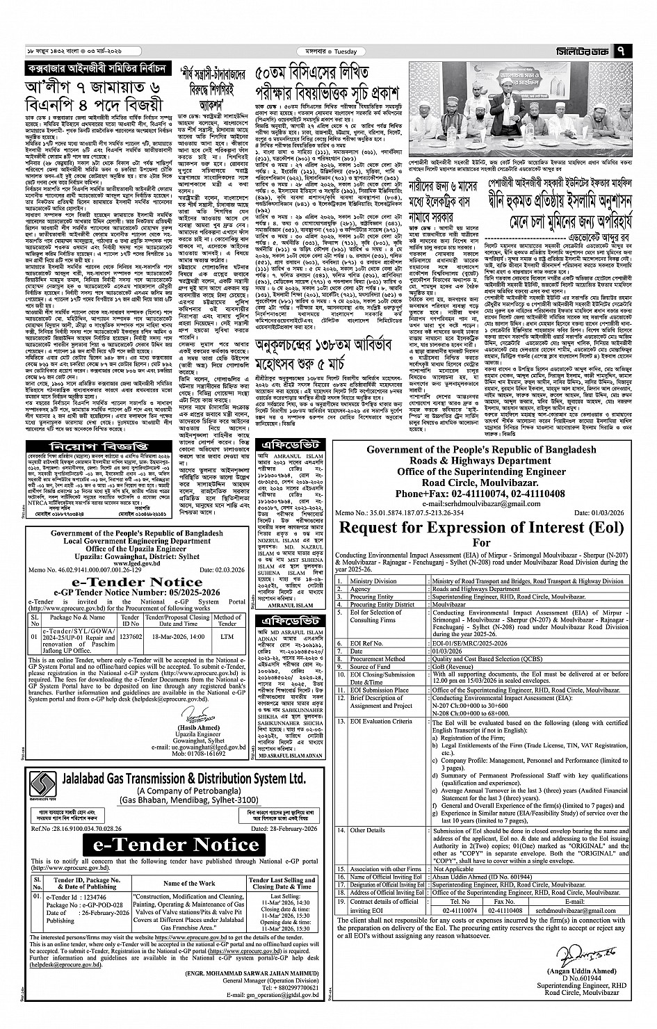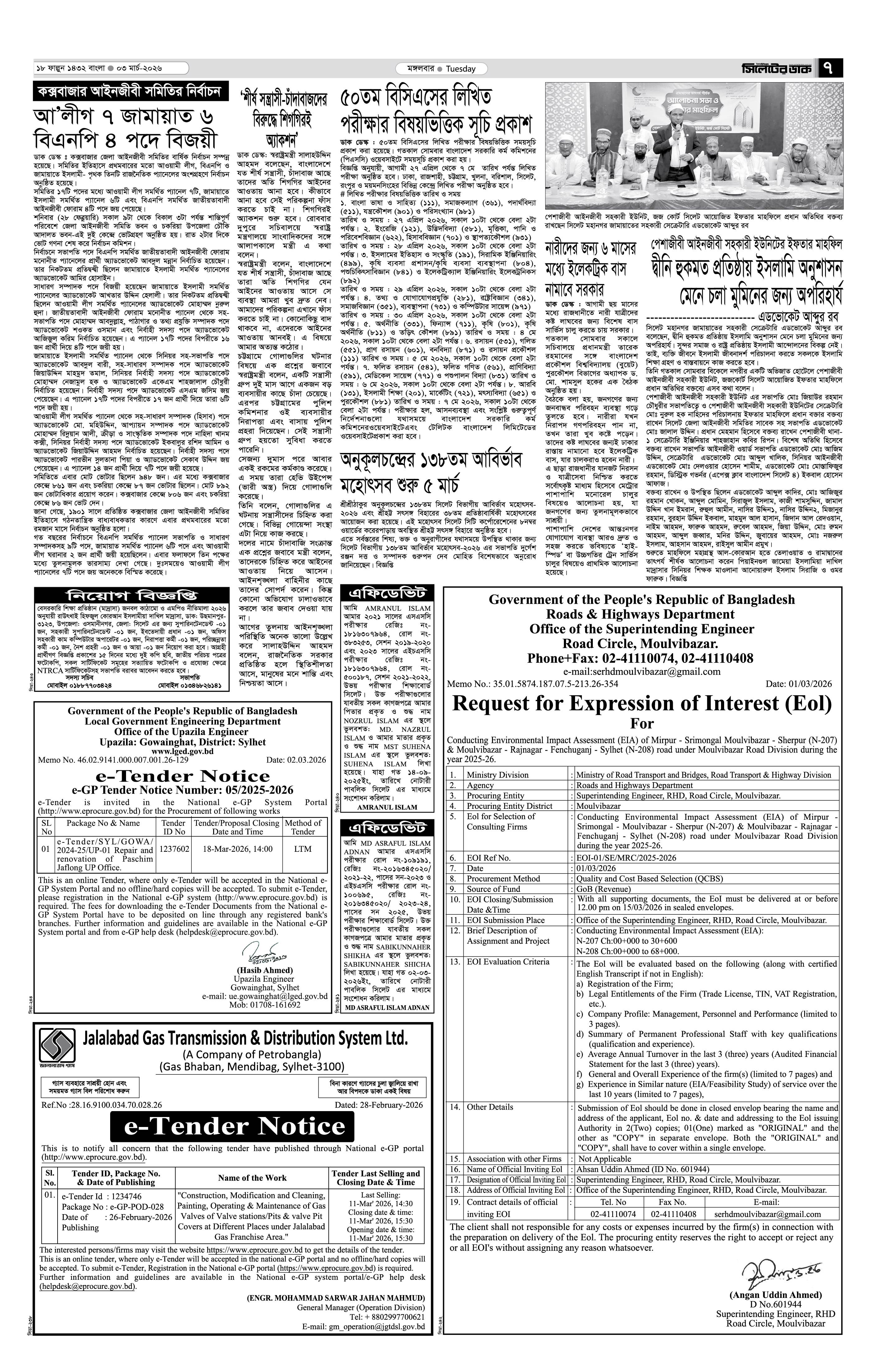 মঙ্গলবার, ০৩ মার্চ ২০২৬