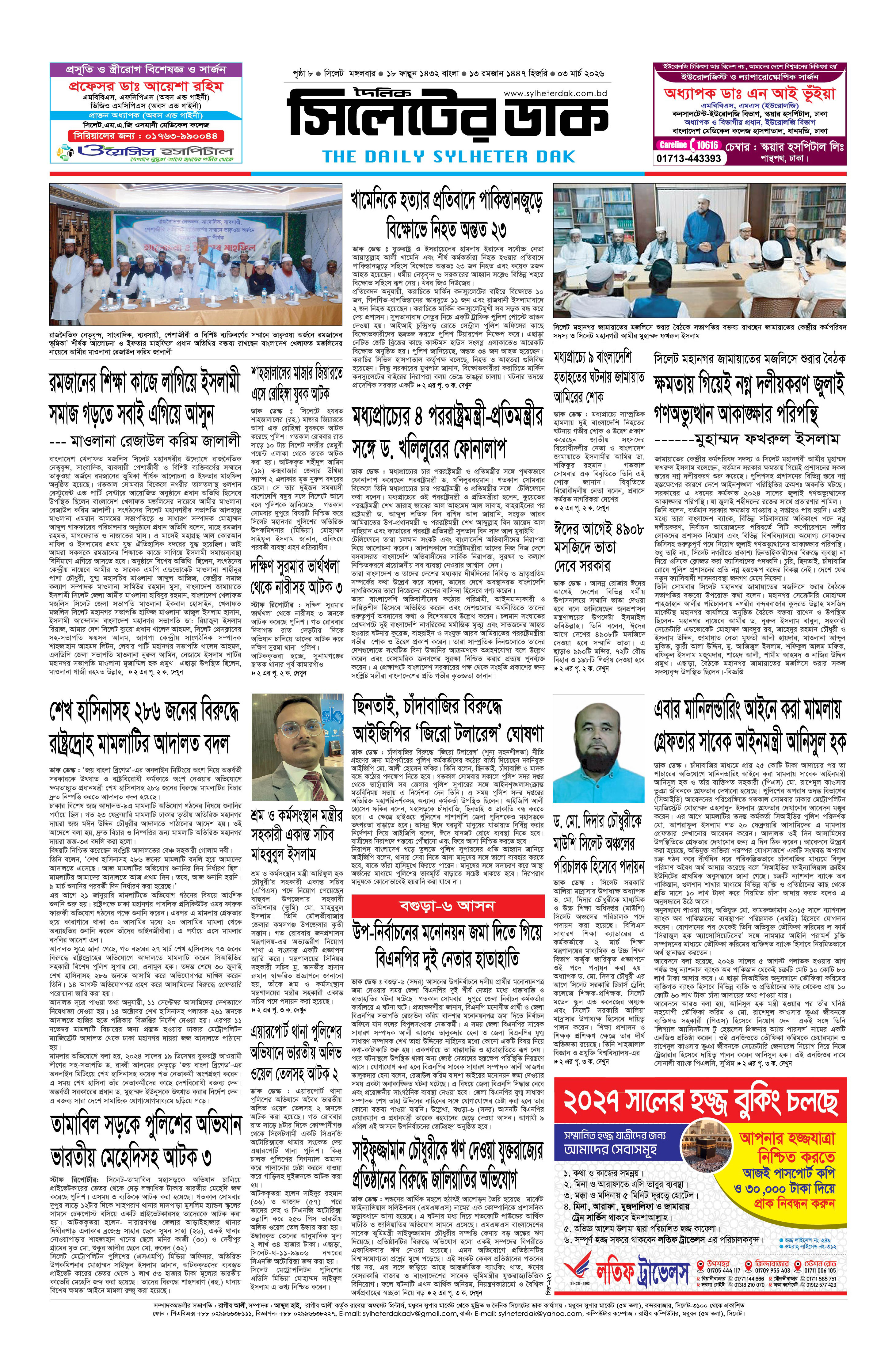 মঙ্গলবার, ০৩ মার্চ ২০২৬